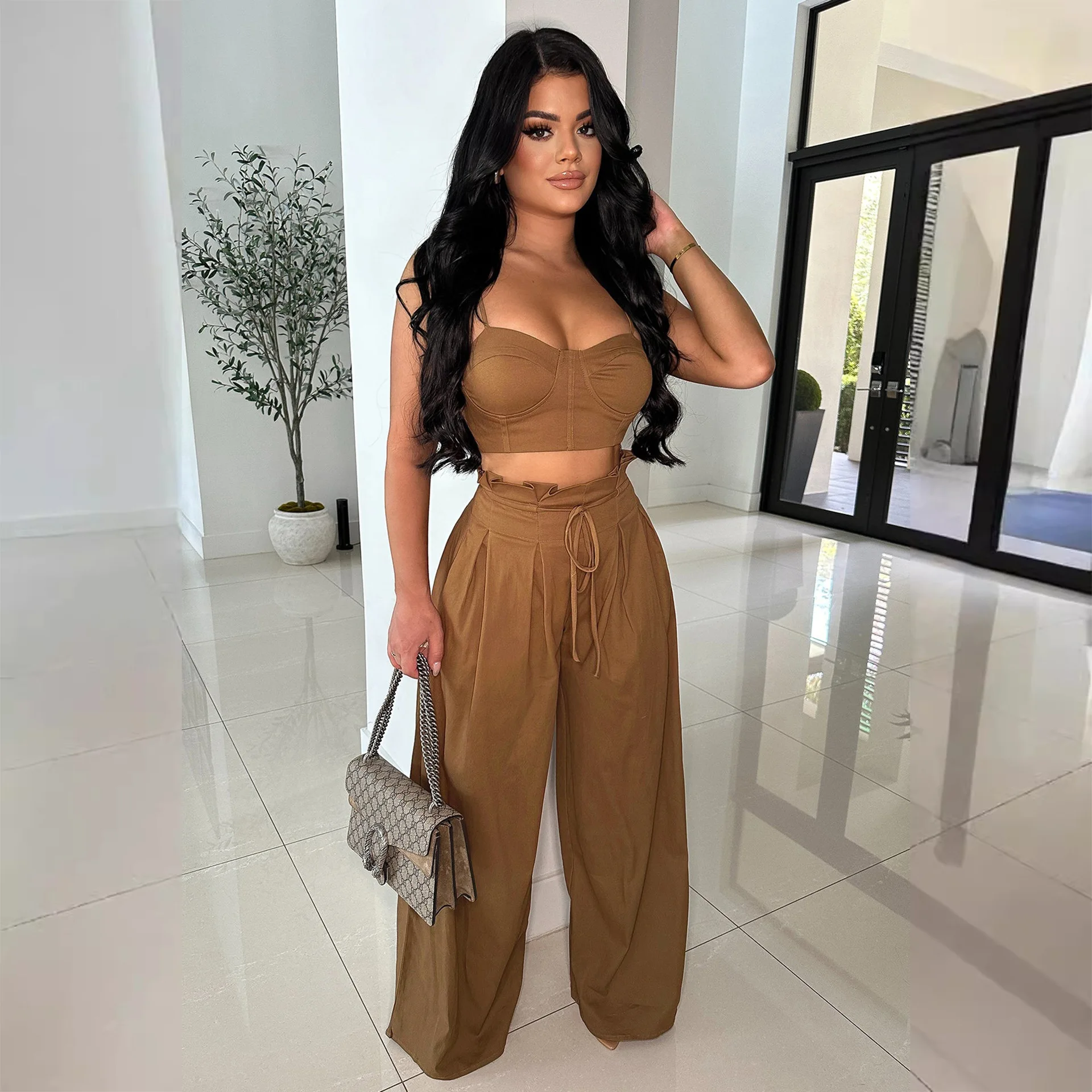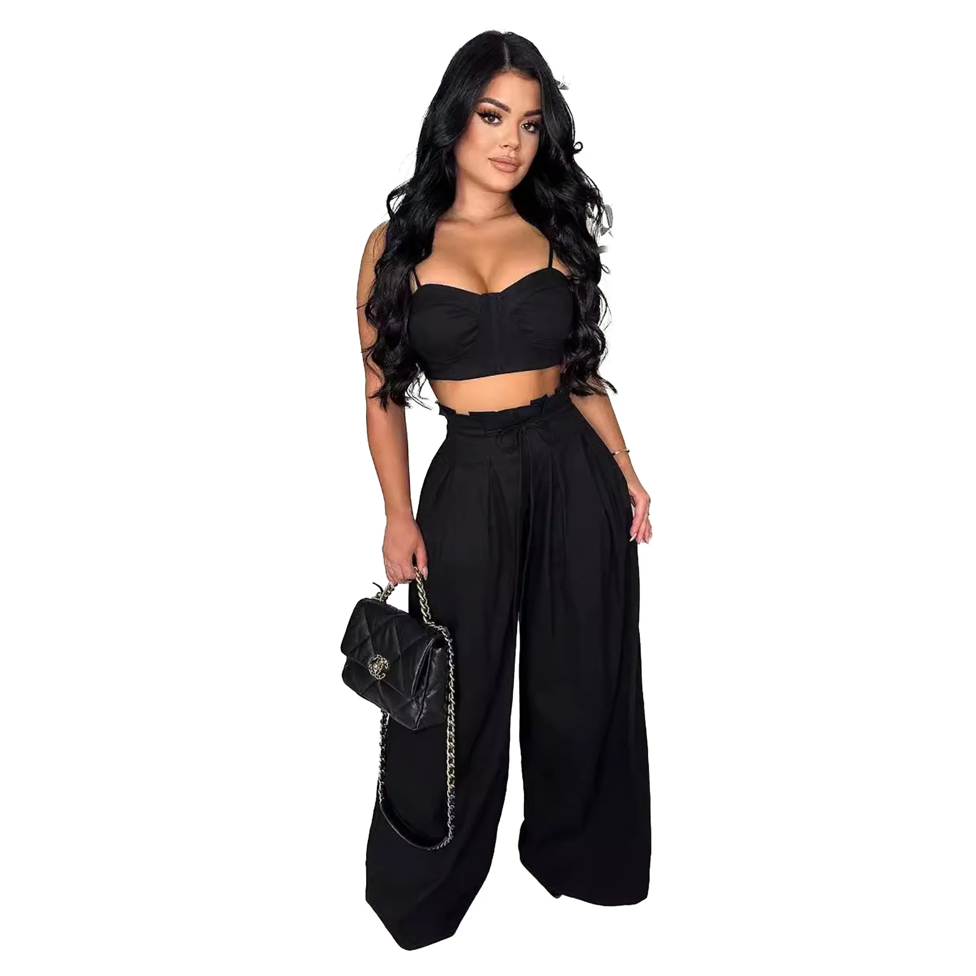 Boutique Wholesale Summer New Fashionable French Women's Set Casual One Size Canvas Daily Wear Top Bottom Solid Pattern Backless